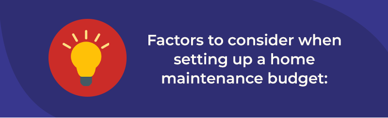 So what are the factors to consider when setting up a home maintenance budget? Here's the list: